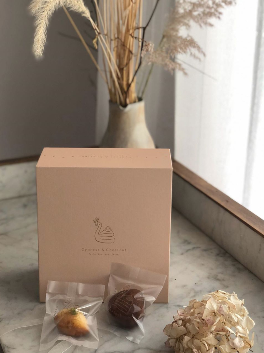 米色禮盒 約可放置 15~25個小點心 價格區間$990~1400